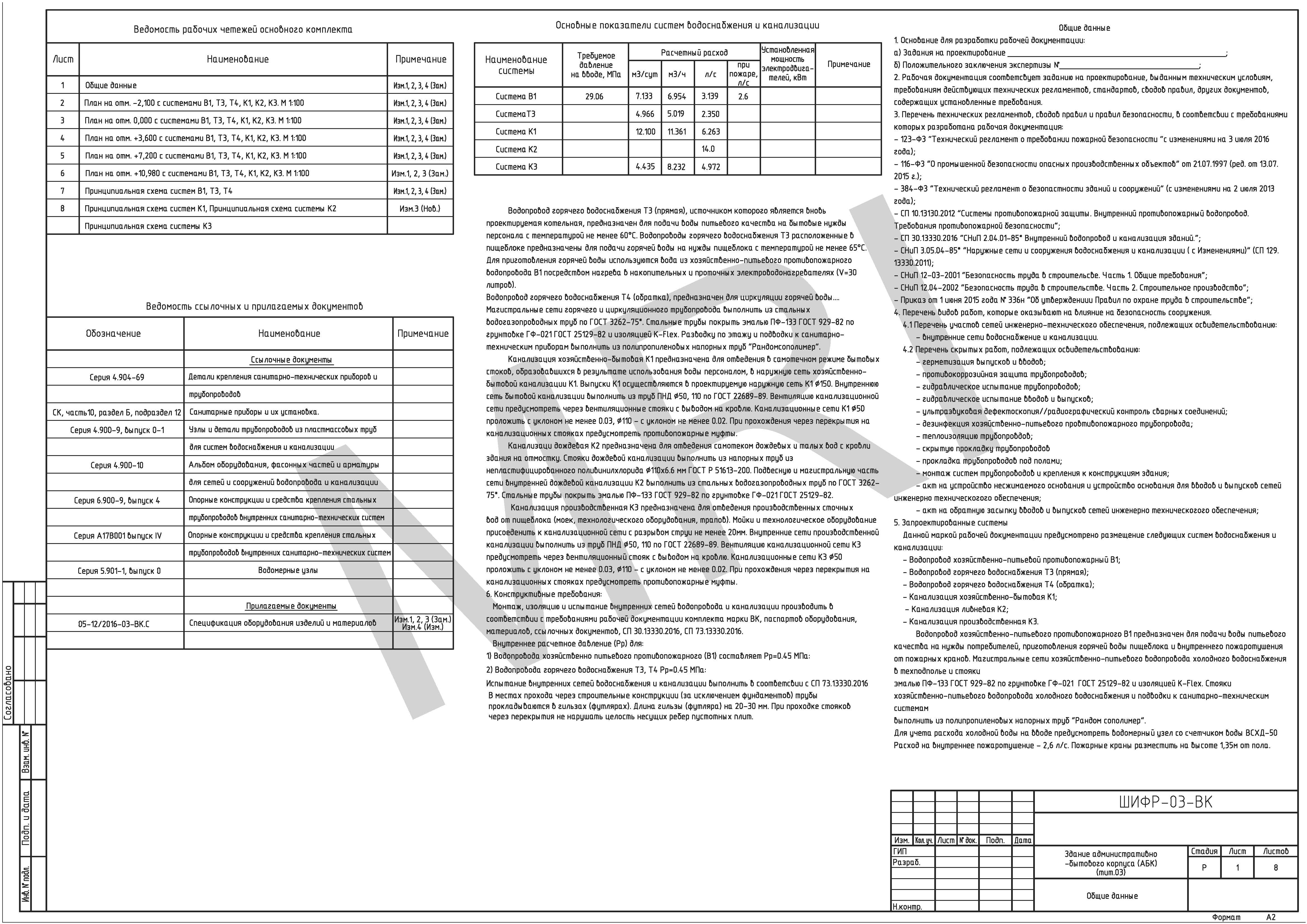 1. Разработка подразделов ИОС2 (водоснабжение), ИОС3 (водоотведение), в соответствии с Градостроительным кодексом, ФЗ, Постановлением №87, СП, ГОСТ, ВНТП и т.д. (и прочих документов согласно техническому заданию на проектирование).
