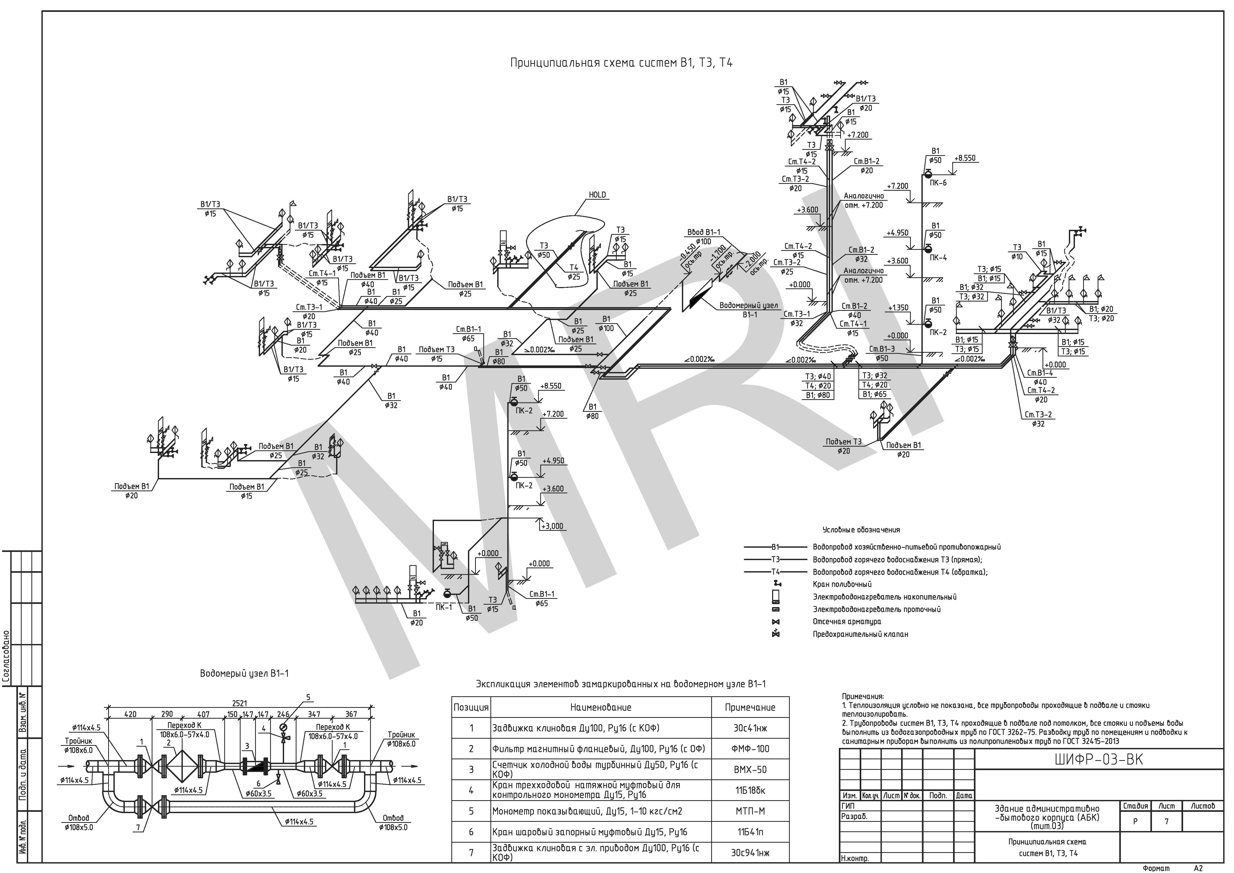 Разработка принципиальных схем систем водоснабжения и канализации;