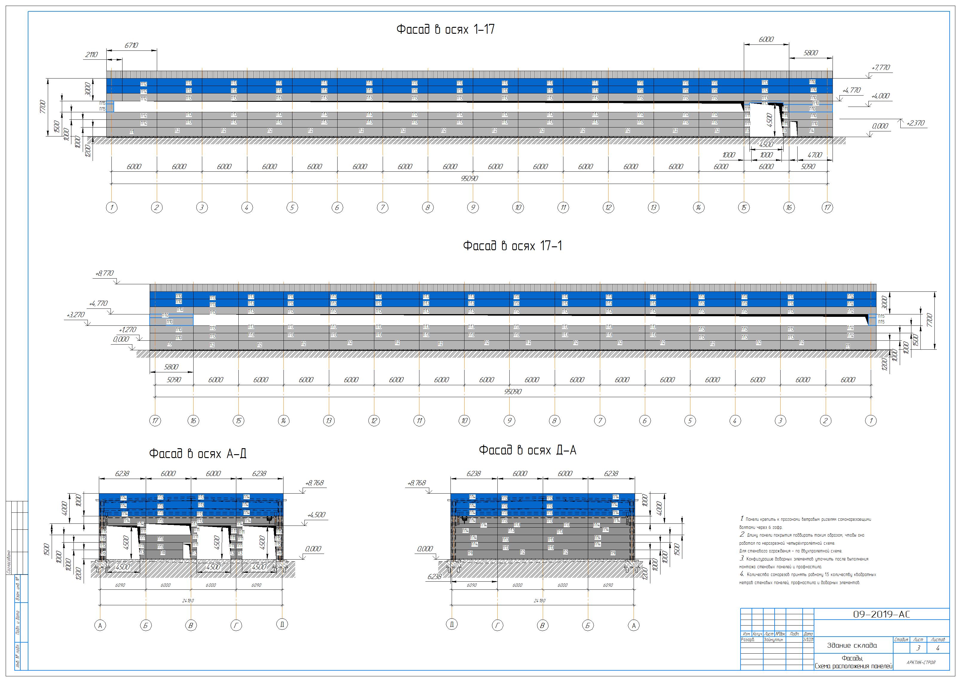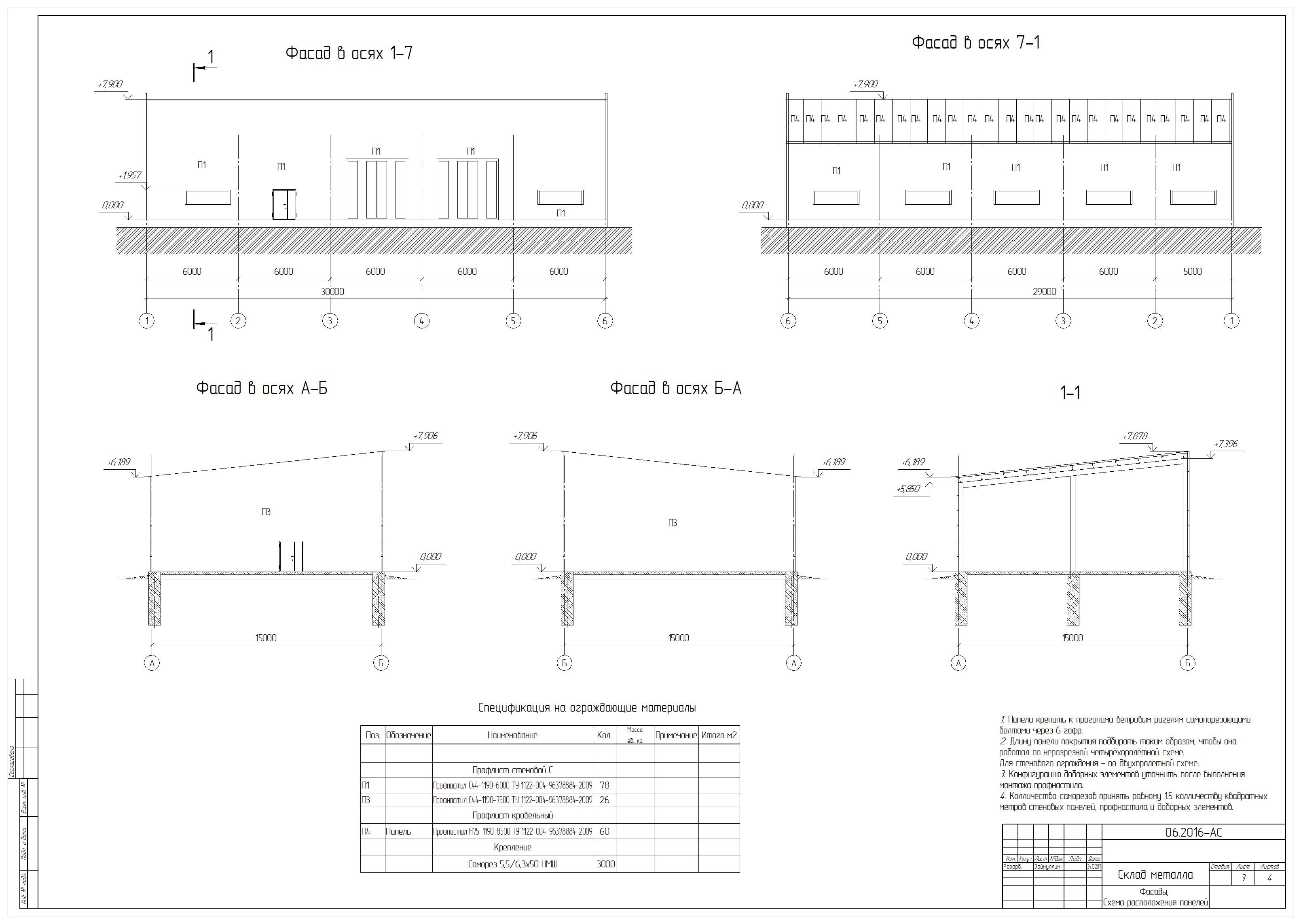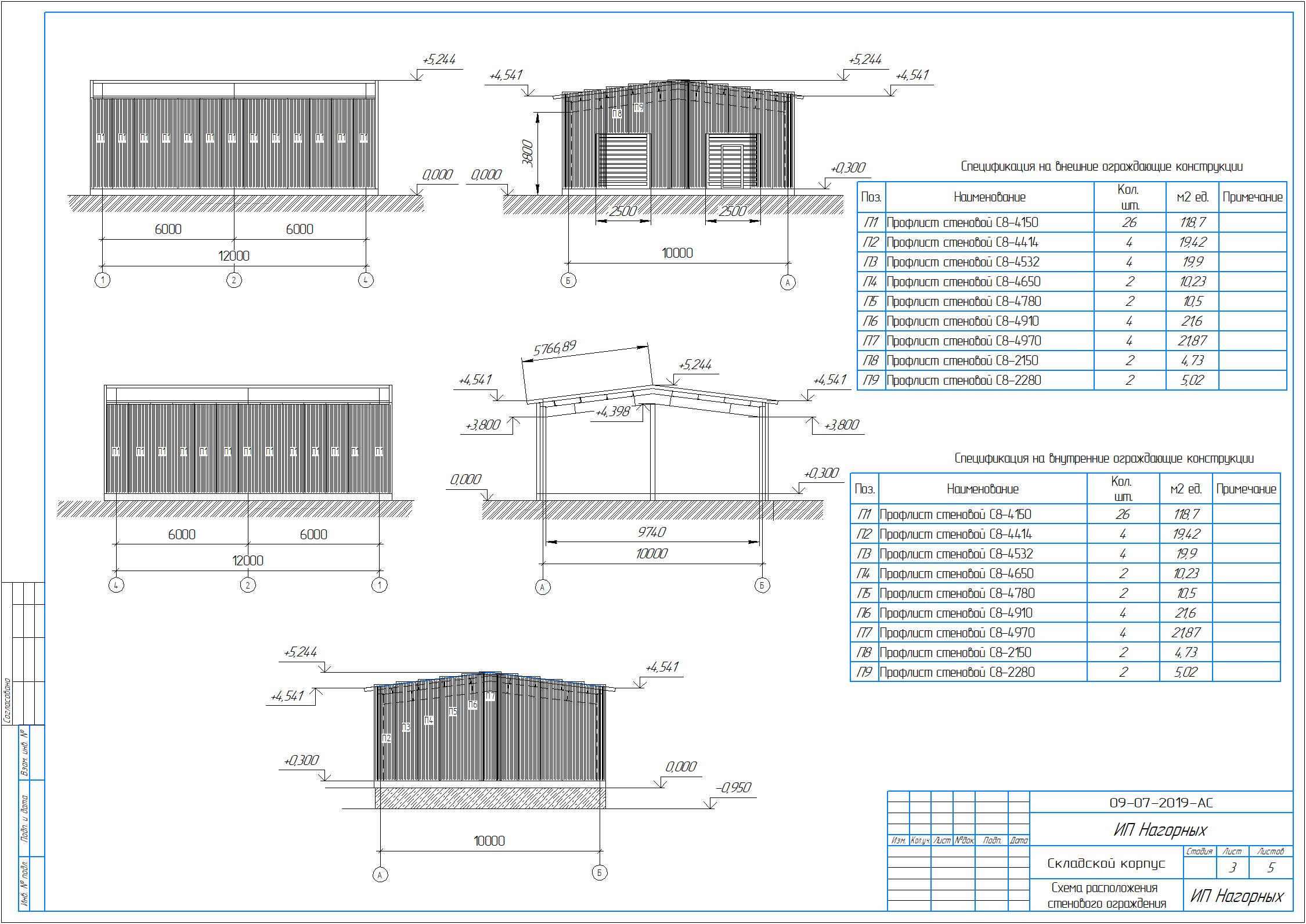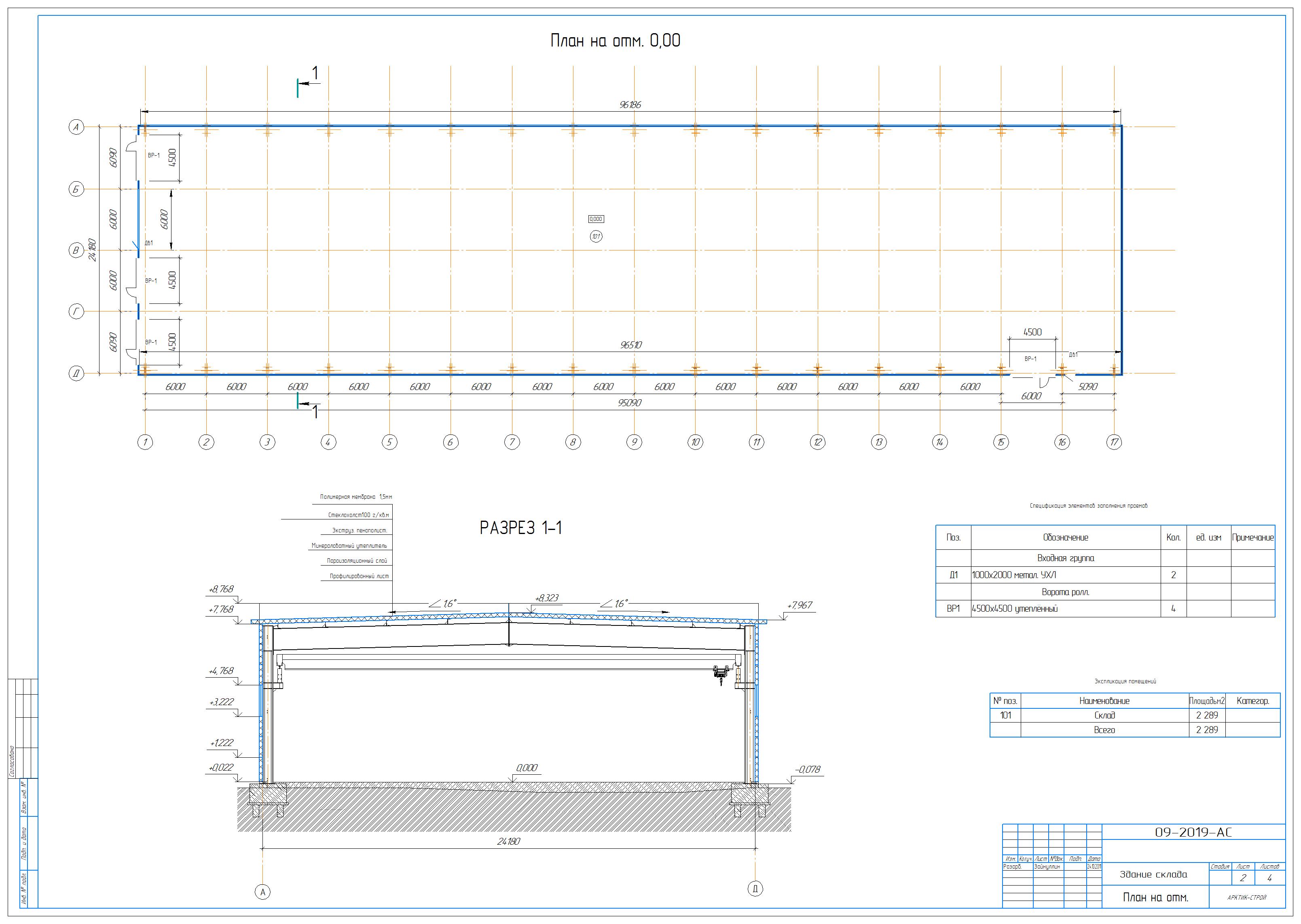 Рабочие чертежи на пристрой здание склада 8,5х39