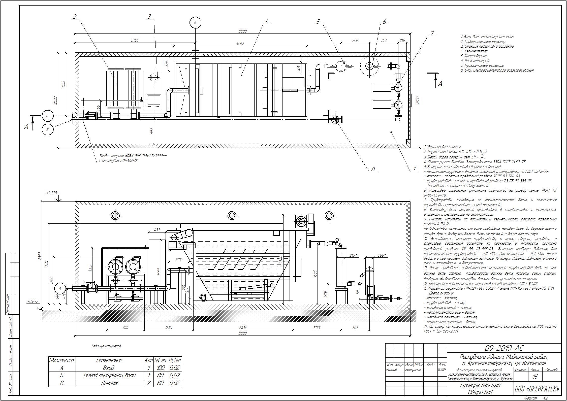 09-2019-АС Блок очистки стоков с промышленным озонатором