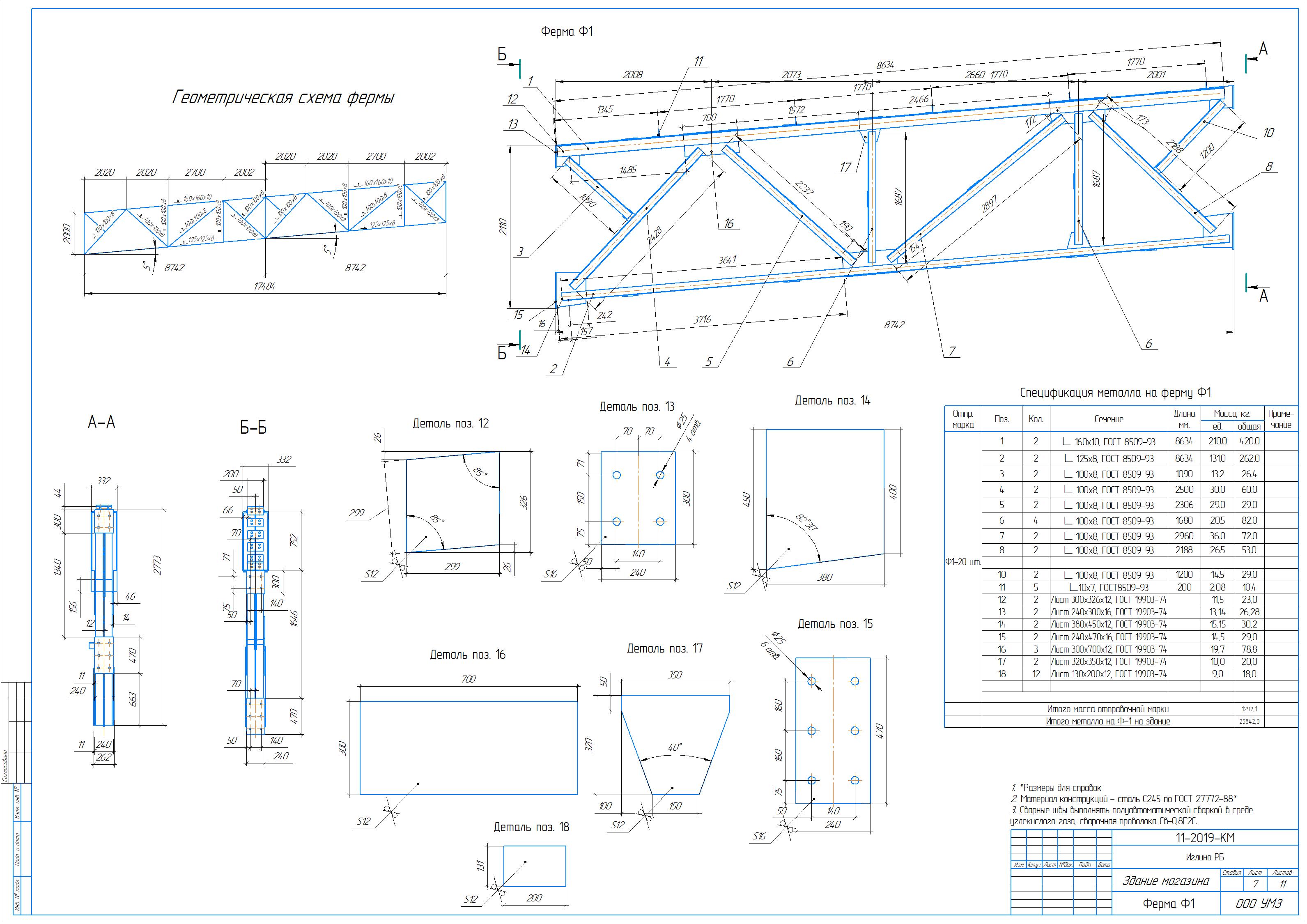 Рабочие чертежи на производственный корпус.