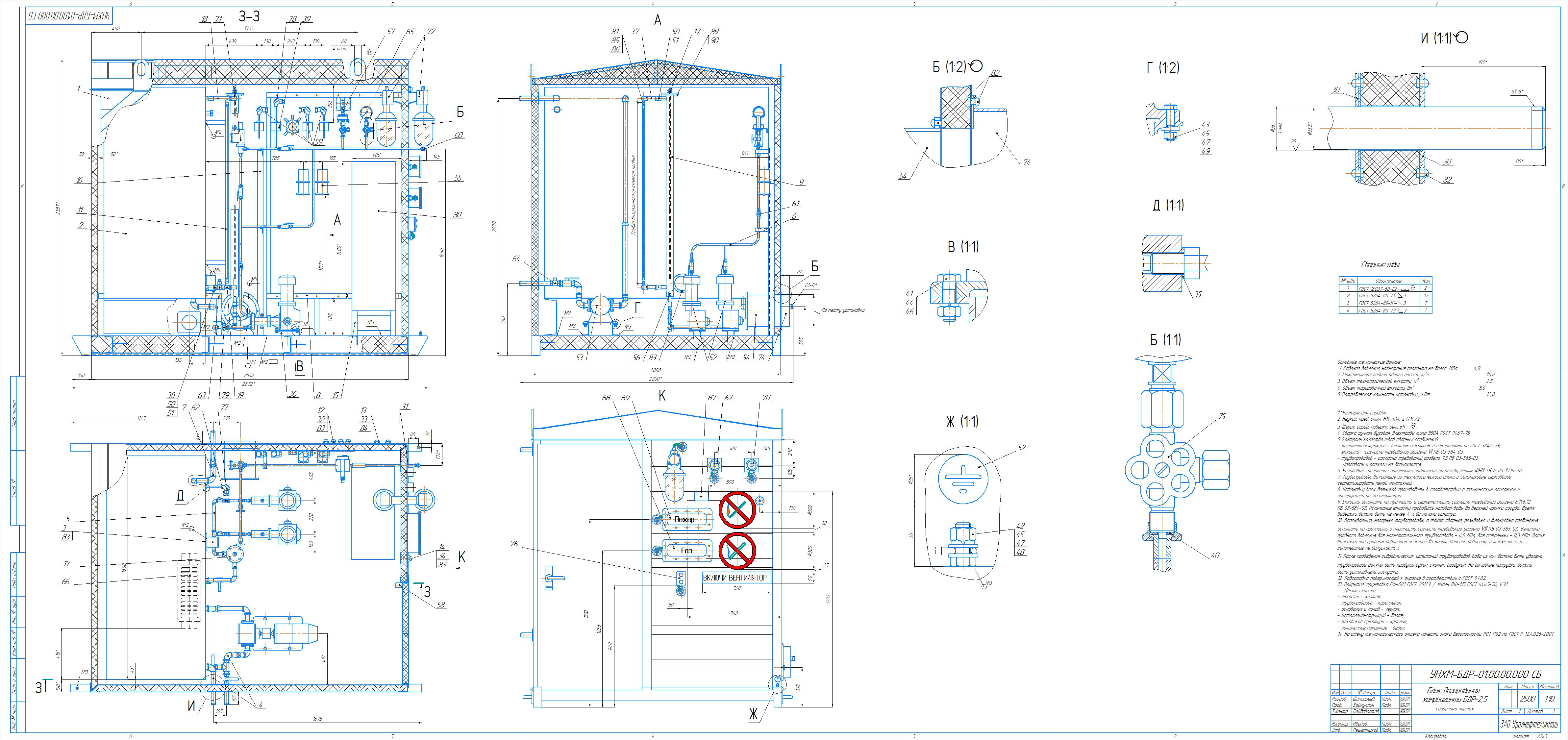 Конструкторская документация на Блок боксы и установки дозирования хим реагентов, БДР, УДХ, и систем автоматизации.
